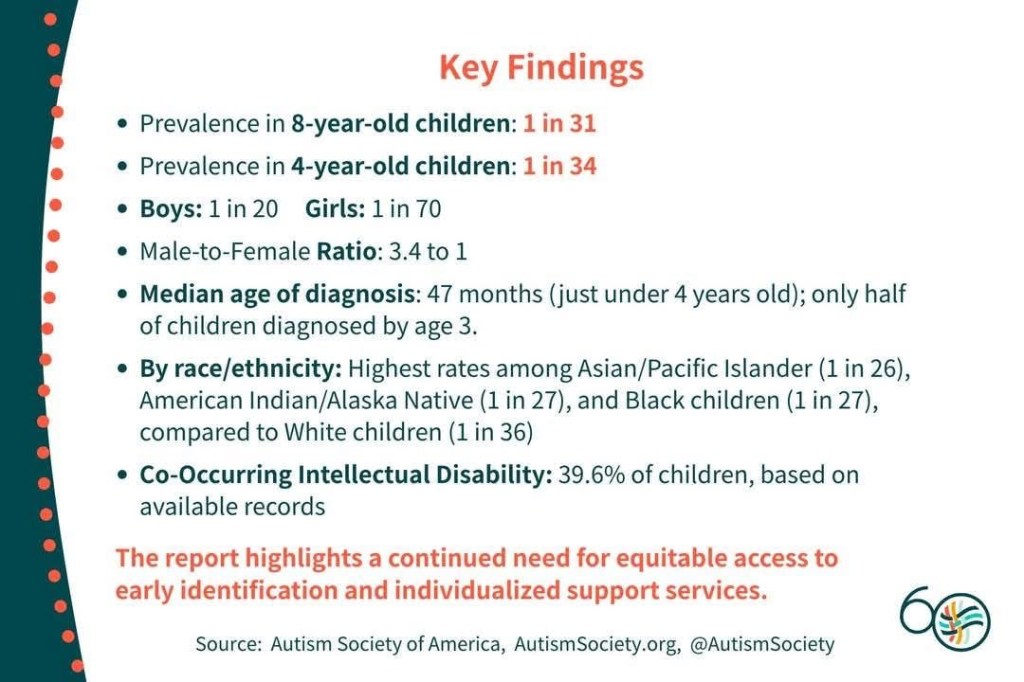 Nuevo informe de los CDC: 1 de cada 31 niños diagnosticados con Autismo